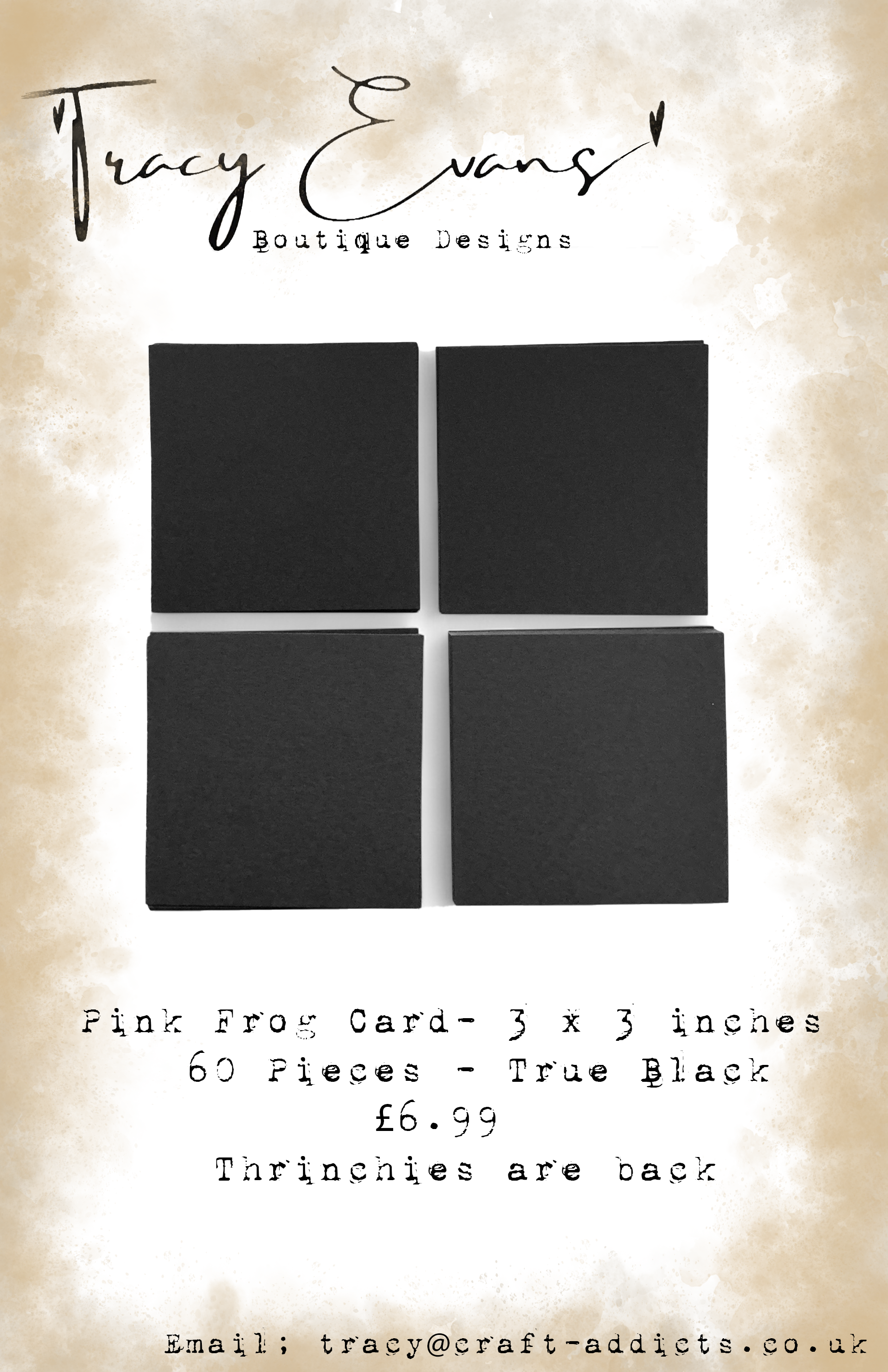 CA014 - 3 x 3 inch Card Pieces Pink Frog 300gsm True Black Card - 60 per pack (Thrinchies are back)