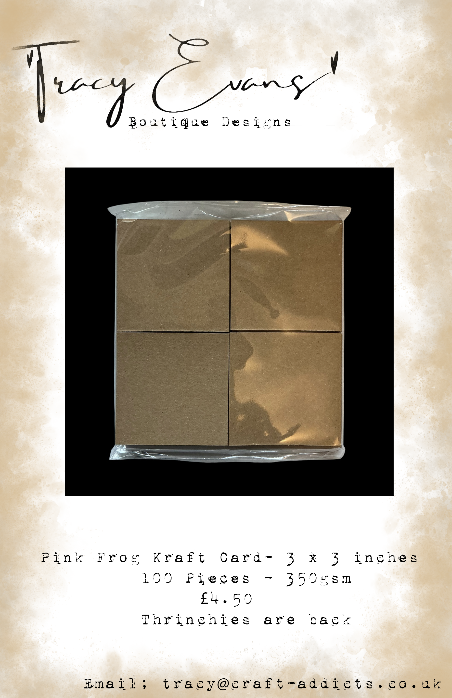 CA017 - 3 x 3 inch Kraft Card Pieces Pink Frog 350gsm Card - 100 pieces per pack (Thrinchies are back)